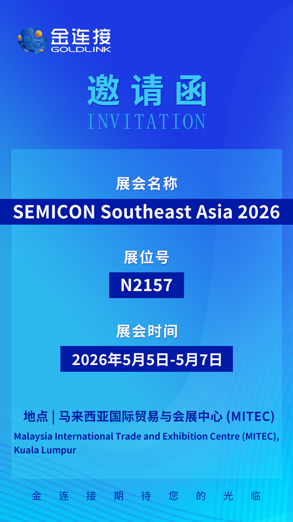 金连接将于 2026年5月5 日-7日在马来西亚国际贸易与会展中心 (MITEC) 参加SEMICON Southeast Asia 2026, 诚邀各位莅临N2157号展位互动交流。