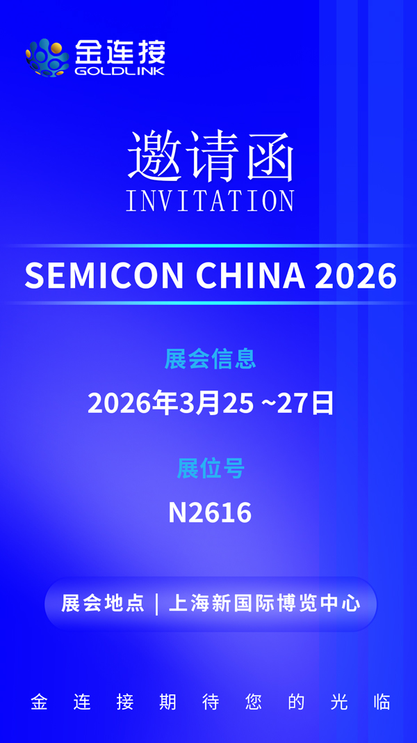 Goldlink will participate in Semicon China 2026 at the Shanghai New International Expo Centre from March 25 to 27, 2026. We cordially invite you to visit Booth N2616 for interaction and discussion.